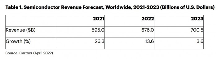 Gartner, an international electronic business agency, has updated its total global semiconductor revenue forecast for 2022.The agency expects total global semiconductor revenue to reach $676 bn in 2022, up 13.6 per cent from 2021.The latest forecast was revised from its previous quarter forecast, up $37 billion.